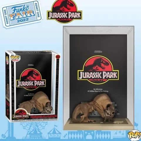 Relive action-packed moments from the adventurous filmJurassic Park!Feast your eyes on the ferocious Tyrannosaurus Rex saving the day by defeating the troublesome Velociraptor, while the mortals flee the premises. Caught in mid-chomp, this 6-inch scale T-Rex is presented in its full prehistoric glory. The Jurassic Park Tyrannosaurus Rex 6-Inch Pop! Figure and Velociraptor Pop! Movie Poster with Case includes the movie’s iconic poster art and comes packaged in a window display box, complete with a hard case! Measures approximately 11-inches wide x 17-inches tall x 5 1/2-inches deep. The Velociraptor Pocket Pop! figure measures approximately 1 1/2-inches tall in this pose.