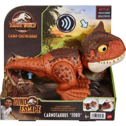 Get ready for thrilling action and adventure with Jurassic World Dino Escape! Inspired by Jurassic World: Camp Cretaceous, this Wild Chompin’ Carnotaurus “Toro” dinosaur figure has an exciting range of motions! Beware the outstretched neck and CHOMPIN’ bite when the button under its tail is pushed! But can this fierce predator be temporarily tamed?