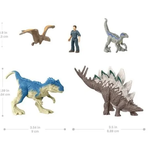 Get ready for thrilling action and adventure withJurassic World: Dominion! These multi-packs of 5 different mini figures, inspired by the movie, make an instant collection! Each pack includes dinosaurs as well as a human figure to enable storytelling. The dinosaur figures included feature stylized design and come in a variety of sizes, within a 1 1/8-inch scale, for authentic dinosaur battling. All the figures are sized to go anywhere, great for trips across town or cross-country. The dinosaurs included range from well-known favorites to some introduced inJurassic World: Dominion. Makes a great gift for 3 year olds and up.
