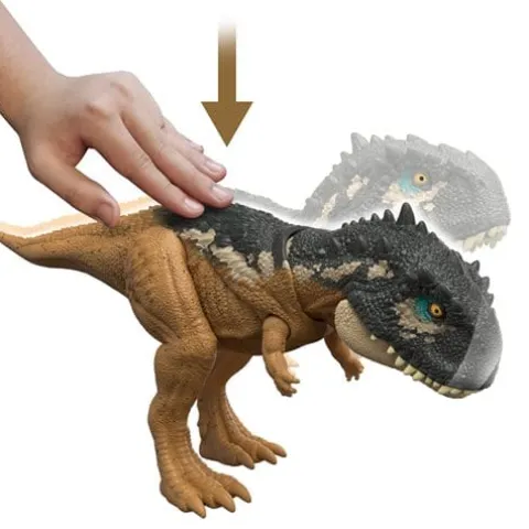 It not only has sound to bring ROARING dinosaur play to life, but also a species-specific CHOMP action, amplified by a neck stretching motion. The attack and roar are easily activated by kids –just press down on the hip area! The 13 in long Rajasaurus has movable joints, authentic sculpting and realistic colors and textures for fun action play and dynamic posing. Bring this Roar Strikers dinosaur TO LIFE with extended digital play using Augmented Reality! Dare to see how REAL dinosaur play can get! Just scan the hidden DNA code with any smart device to unlock the AR experiences in the free Jurassic World Facts app. Smart device not included.
