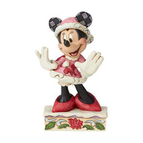 The Disney Minnie Christmas Personality Statue is made of stone resin and measures approximately 4.625-inches tall.