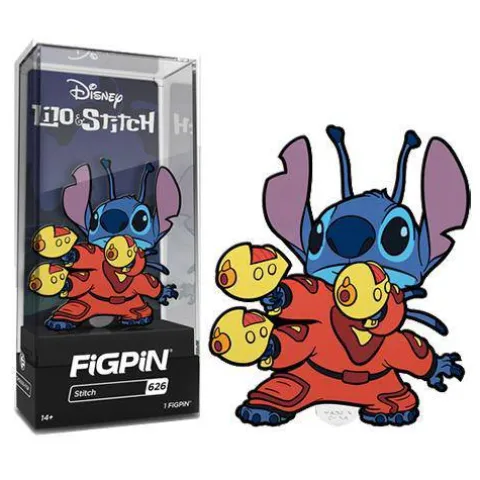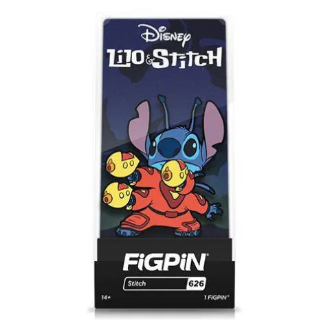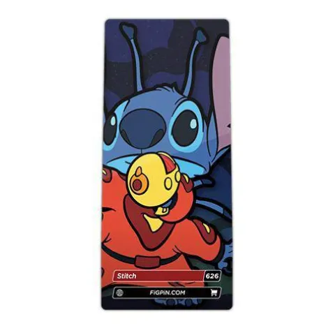 The Lilo & Stitch Stitch FiGPiN Enamel Pin is amazingly detailed and is able to stand up with the signature FiGPiN rubber backer stand. Each pin has an ultra-collectible FiGPiN clear protector case.