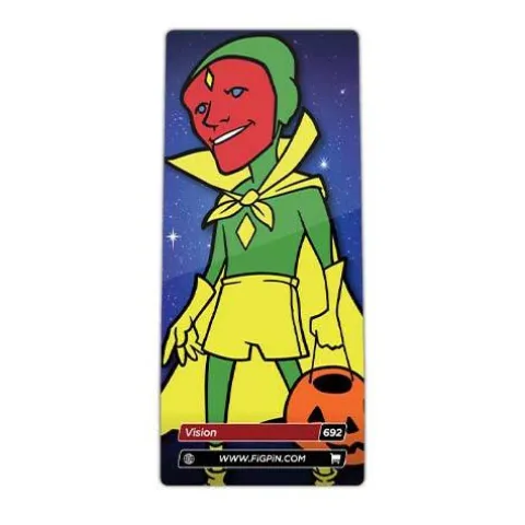 The WandaVision Wanda FiGPiN Enamel Pin is amazingly detailed and is able to stand up with the signature FiGPiN rubber backer stand. The 3-inch tall pin comes displayed in front of a collectible WandaVision Wanda art backer card and is fully encapsulated in the ultra-collectible FiGPiN clear protector case.