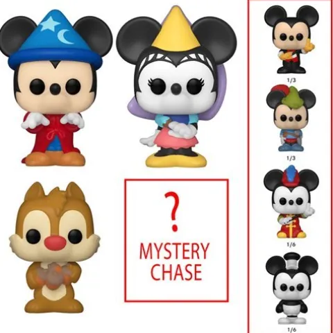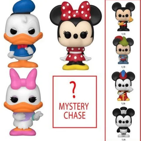 Running out of space for full-sized Pop! Vinyl Figures? Build a collection of your favorite Pop! Vinyl Figures that take of a fraction of the space! Each Bitty Pop! Mini-Figure measures approximately 1-inch tall and comes packaged in a miniature acrylic Pop! box. The bottom lid of the pop box can be opened to remove the Bitty Pop!, but the figure is attached to the bottom lid. Each Bitty Pop! 4-Pack includes 4x Bitty Pop!s in individual acrylic Pop! boxes, with the set of 4 lined up horizontally together in a long acrylic case. 3 characters are visible, while one is a mystery and could be any one of 4x possible chase figures with varying rarities!