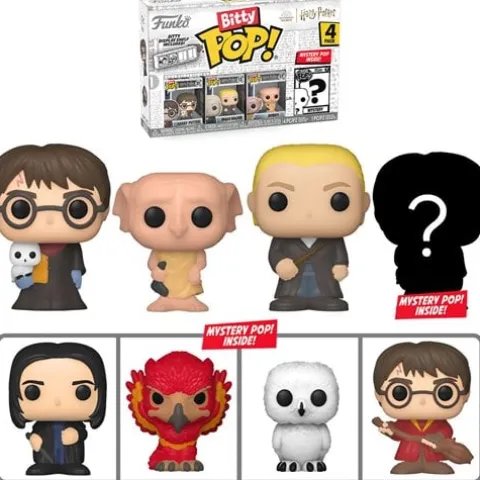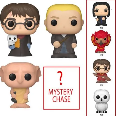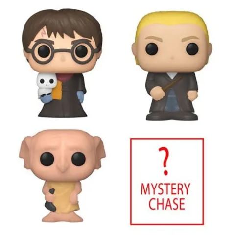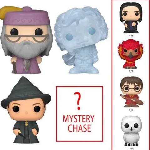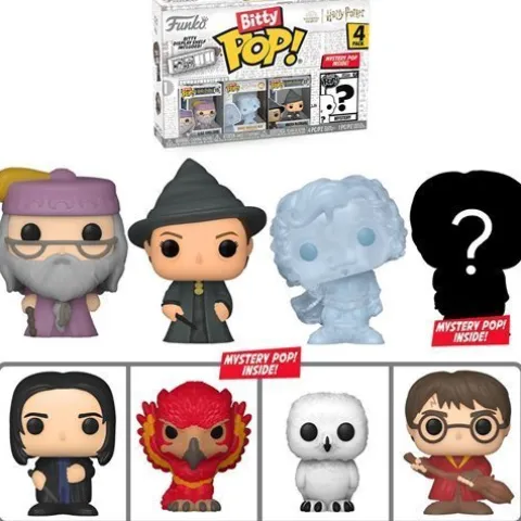 Running out of space for full-sized Pop! Vinyl Figures? Build a collection of your favorite Pop! Vinyl Figures that take of a fraction of the space! Each Bitty Pop! Mini-Figure measures approximately 1-inch tall and comes packaged in a miniature acrylic Pop! box. The bottom lid of the pop box can be opened to remove the Bitty Pop!, but the figure is attached to the bottom lid. Each Bitty Pop! 4-Pack includes 4x Bitty Pop!s in individual acrylic Pop! boxes, with the set of 4 lined up horizontally together in a long acrylic case. 3 characters are visible, while one is a mystery and could be any one of 4x possible chase figures with varying rarities!