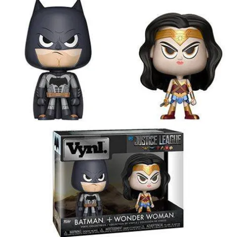 - Each measuring approximately 3 3/4-inches tall. This DC Comics Wonder Woman and Batman VYNL Figure 2-Pack comes packaged in a window display box.