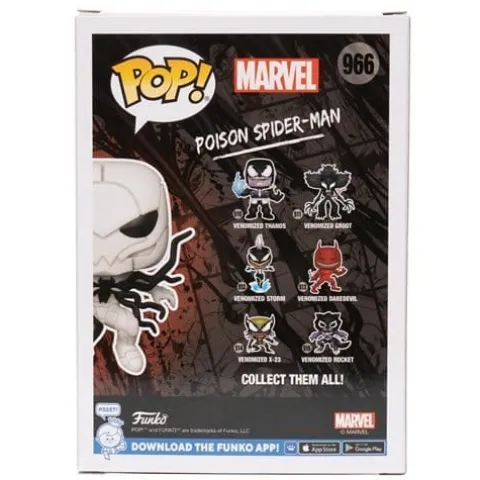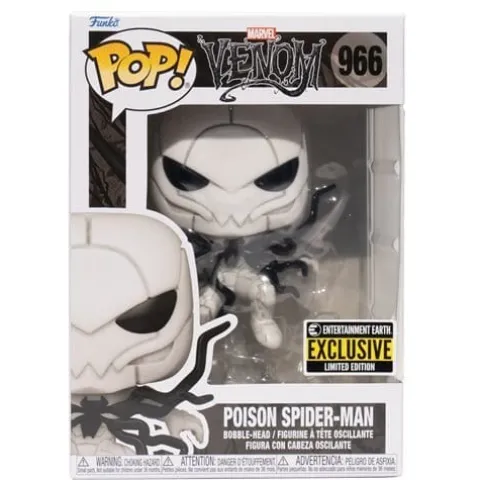Entertainment Earth Exclusive! Spider-Man seems to have a symbiote problem on his hands. Straight out of the Venomverse, this one-of-a-kind Venom Poison Spider-Man Pop! Vinyl Figure features an all-white suit, complete with the symbiote chest emblem rippling out of his body! Measuring roughly 3 3/4-inches tall, the Venom Poison Spider-Man Pop! Vinyl Figure – Entertainment Earth Exclusive comes in window-box packaging, ready for play or display. You’ll also want to keep an eye out for the randomly selected glow-in-the dark chase variant of the figure! Order your Spidey exclusive today!