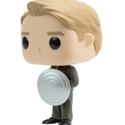 Entertainment Earth Exclusive!Expand your collection with Marvel’s first Avenger! Captain Steve Rogers isn’t just a kid from Brooklyn anymore – he’s ready to join the fight against Hydra. Straight off the screen of 2011’sCaptain America: The First Avenger,Rogers, aka Captain America, is in his soldier uniform, wielding his prototype shield of unpainted vibranium. The look is completed by the sepia deco on Rogers and a metallic silver finish on his iconic shield. This Captain America with Prototype Shield Pop! Vinyl Figure – Entertainment Earth Exclusive measures roughly 3 3/4-inches tall and comes packaged in a window display box. Assemble your Avengers collection and add this limited edition exclusive to it!