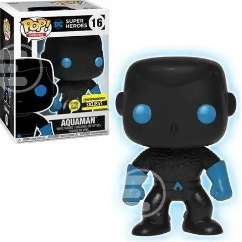- POP Figure from Funko #16 – DC Heroes – Aquaman Silhouette Glow-in-the-Dark vinyl figure