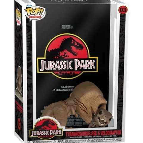 Relive action-packed moments from the adventurous filmJurassic Park!Feast your eyes on the ferocious Tyrannosaurus Rex saving the day by defeating the troublesome Velociraptor, while the mortals flee the premises. Caught in mid-chomp, this 6-inch scale T-Rex is presented in its full prehistoric glory. The Jurassic Park Tyrannosaurus Rex 6-Inch Pop! Figure and Velociraptor Pop! Movie Poster with Case includes the movie’s iconic poster art and comes packaged in a window display box, complete with a hard case! Measures approximately 11-inches wide x 17-inches tall x 5 1/2-inches deep. The Velociraptor Pocket Pop! figure measures approximately 1 1/2-inches tall in this pose.