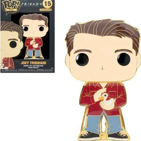 Expand your Pop! style with Pop! Pins! This large Pop! Pin measures approximately 3 3/4-inches tall, just like the Pop! Vinyl Figure it’s based on. Not only does the pin have the standard pin backings so you can attach it to bags or a cork board; it also has a “Funko Crown” pin stand allowing it to stand up for a dynamic display! True to it’s namesake, the head is raised making it pop from the body. This Friends Joey Large Enamel Pop! Pin comes packaged in a window display box.