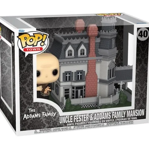 - The Addams Family Uncle Fester & Addams Family Mansion Pop! Town #40 comes packaged in a window display box. T