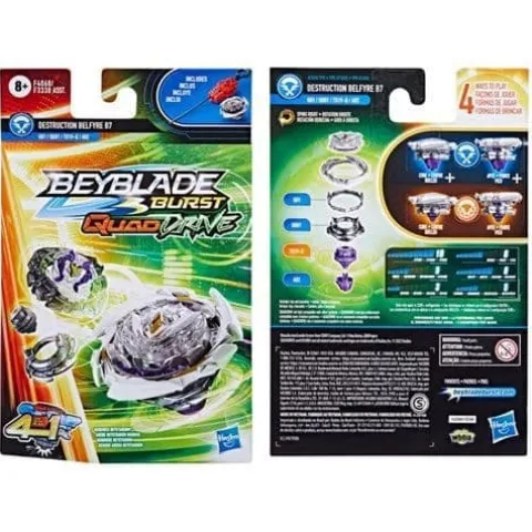 Train to become champion of the arena with the included right-spin Beyblade Burst QuadDrive Destruction Belfyre B7 G01 DQ01 TS19-Q A02 top and launcher. Customize the top to Core and Apex mode for stamina type or to Core+ and Apex+ mode for attack type. Harness the power of advanced QuadDrive tech in the QuadDrive Beystadium (Beystadium sold separately, subject to availability). Scan code on QuadDrive tops to unleash your top in a virtual battle in the Beyblade Burst app! Includes Beyblade Burst QuadDrive top, launcher and instructions. Ages 8 and up.