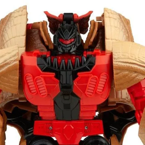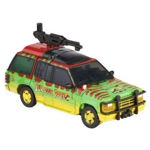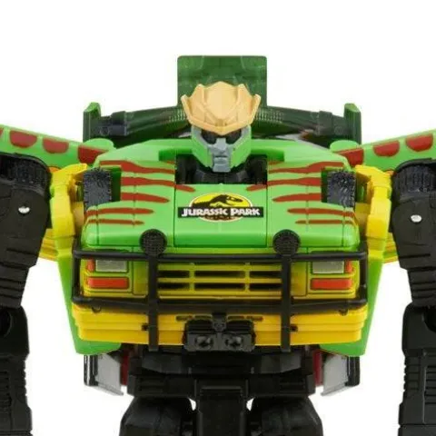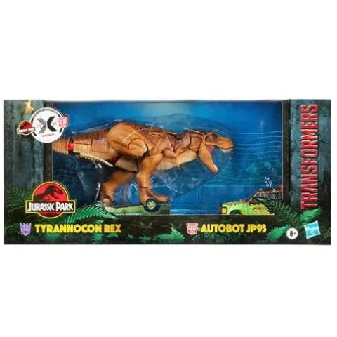 Tyrannocon Rex is on the loose! It’s up to Autobot JP93 to track her down and stop her from wreaking havoc on Jurassic Park! The Tyrannocon Rex figure converts into T. rex mode in 27 steps and the 5 1/2-inch tall Autobot JP93 figure converts into licensed Ford Explorer mode in 18 steps. Both figures feature deco and details inspired by the 7-inch tall Jurassic Park movie. Set includes 2 figures, accessory, and instructions.