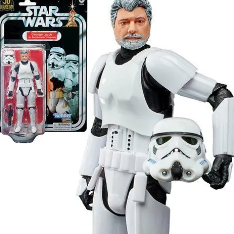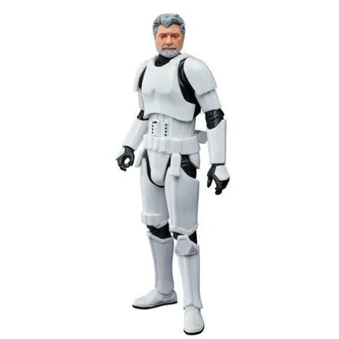The creator of Star Wars! Fans and collectors can bring this premium George Lucas (In Stormtrooper Disguise) action figure home to display on their shelves as part of their Star Wars collection. The Star Wars The Black Series George Lucas (In Stormtrooper Disguise) 6-Inch Action Figure makes use of the updated 2020The Black SeriesImperial Stormtrooper body and puts George Lucas under the helmet! Plastic action figure has removable helmet and blaster pistol. Comes packaged on a retro-style cardback, similar to the 40th Anniversary Collection figures and some of the 50th Anniversary of Lucasfilm exclusive releases. Ages 4 and up.