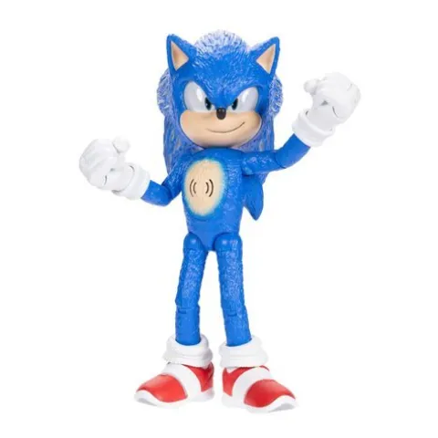 This 12-inch movie-styled Sonic figure is the ultimate Sonic toy! This figure has 15 points of articulation, boasts a realistic movie aesthetic, includes 30+ iconic and humorous phrases and sounds from the films, and lights up! Press Sonic’s chest to activate light-up eyes and quills. Press Sonic’s hands and sneakers to activate the phrases and sounds and really bring the action to life! This figure is perfect for fans and collectors looking to bring Sonic’s adventurous spirit into their world. – 12” scale movie-styled figure inspired by the Sonic the Hedgehog movies – Features 30+ iconic and humorous phrases and sounds from the movies – Light-up eyes and quills by pressing Sonic’s chest – Press Sonic’s hands and sneakers to activate phrases and sounds!