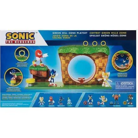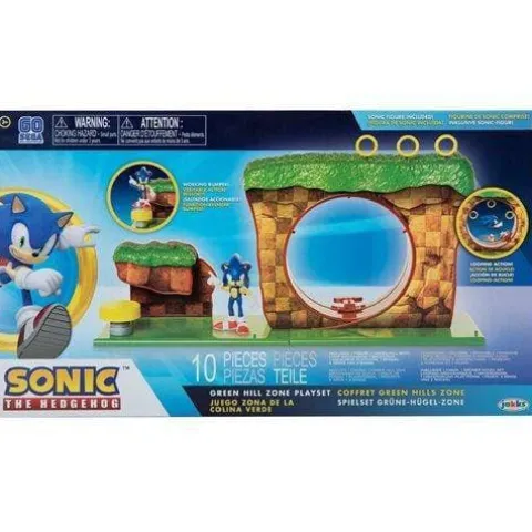The Green Hill Zone Playset makes a great gift for kids and Sonic fans! You can recreate the action from the games with this extraordinarily detailed playset and its playable features. This playset includes a 2 1/2-inch scale Sonic figure and a spinning loop where you can spin Sonic around and around at super speed. There’s also a bouncing bumper where you can bounce Sonic and land him on top of the Green Hill Zone’s loop. This playset is kid powered and does not require batteries. Take your playset and have fun on the go! The playset includes pegs for displaying Sonic figures and accessory pieces.