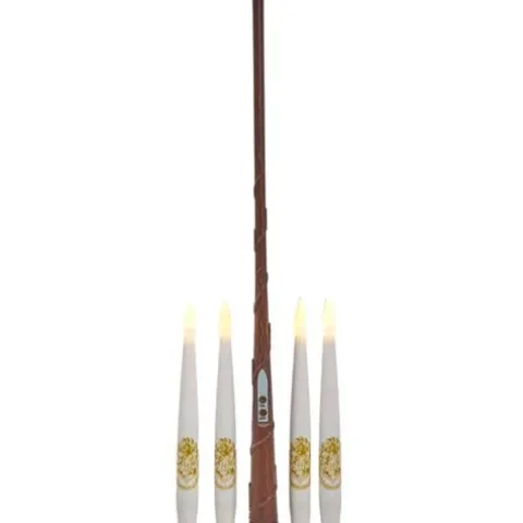 The Harry Potter Floating Candles with Wand Remote 11-Piece Ornament Set is a fun and festive addition to any home or office holiday décor. This set includes ten battery-operated candles that create the illusion of floating candles. Each candle features the Hogwarts crest and is connected to a wand remote, allowing you to easily turn them on and off. Whether you’re a fan ofHarry Potteror just love unique lighting, this set is sure to be a hit. The candles measure approximately 6-inches tall and the wand is 14-inches tall. Each candle requires 1x “AAA” battery, not included. Candles and wand remote are made of plastic. Ages 14 and up.