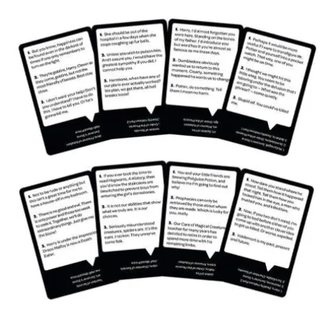 What’s It About:Who Says? is a Quote-Trivia card game that challenges players to prove how well they know their favorite Harry Potter characters.