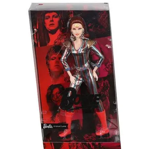 Embrace the magic of music and fashion with the Barbie Collector David Bowie Doll! This enchanting collaboration brings together the timeless elegance of Barbie and the legendary flair of David Bowie. Adorned in a dazzling take on Bowie’s iconic Aladdin Sane look, this doll is a true masterpiece for collectors aged 14 and up. Join the celebration of creativity and style with this fabulous addition to the Gold Label Collection!