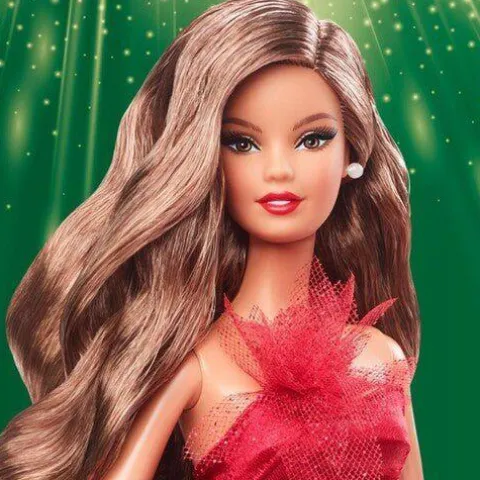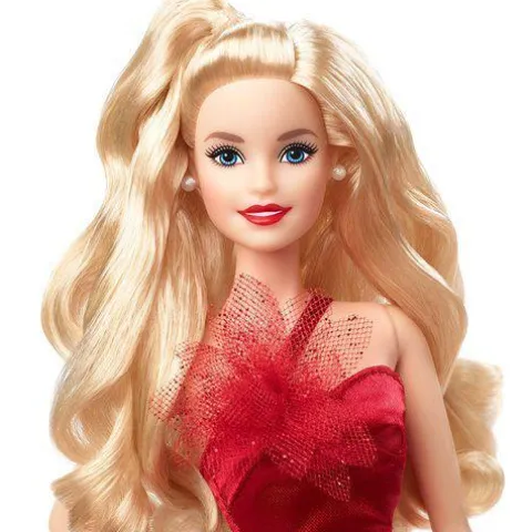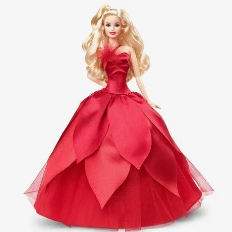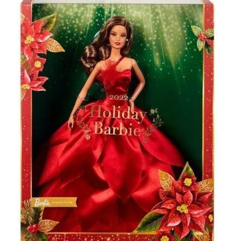 - 2022 HOLIDAY BARBIE: The 2022 Holiday Barbie Doll embodies the spirit of the season in a vibrant, red gown inspired by the beautiful poinsettia, a symbol of good will and community spirit. Her ensemble dazzles with a shimmering poinsettia detail at the neckline and a layer of tulle and satiny petals adorning her long, full skirt. Gorgeous, golden chandelier earrings and red lips complete her look.