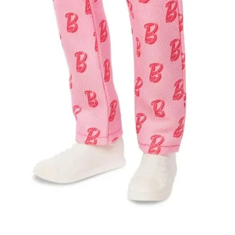 Greetings from Barbie Land! Modeled by Ryan Gosling’s Ken character inBarbie The Movie, this collectible Ken doll wears a pink jumpsuit with a Barbie “B” symbol throughout. Inspired by the scene where Ken joins Barbie on her adventure to the Real World, the Ken doll includes his iconic roller skates — just in case he needs them — while wearing his signature white sneakers! With his platinum blonde hair, he captures all of Ken’s signature style! Celebrating Barbie The Movie, this Ken doll makes a great toy for fans and collectors alike. Doll stand included. Doll cannot stand alone. Ages 6-year-old end up