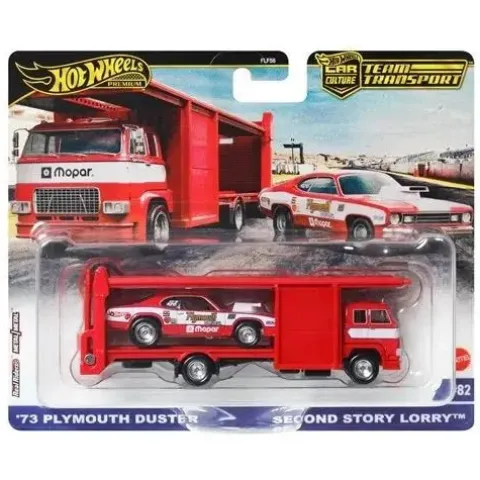 Rev up your collection with the Hot Wheels Team Transport 2025! Each 1:64 scale set features a stunning vehicle and hauler duo, perfect for showcasing your automotive passion. Choose from exciting options like the ’73 Honda Civic Custom, Aero Lift Toyota FJ Cruiser, Horizon Hauler ’73 Plymouth Duster, and Second Story Lorry—each sold separately! With realistic details and vibrant designs, these treasures celebrate racing heritage and car culture in style. Ideal for collectors and racing enthusiasts of all ages, these delightful sets are waiting for you to load and unload—so why not collect them all? Ages 3 and up.