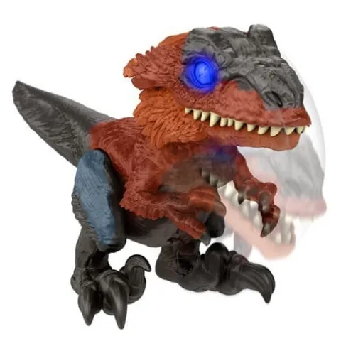 Get ready for action and adventure withJurassic World: Dominion! This Ultimate Pyroraptor figure, based on the species introduced in the movie, has been uncaged so fans can experience the excitement of human and dinosaur interaction. This toy includes a wide attacking jaw, rotating body, and raising and lowering tail, not to mention animated eyebrows and feathers standing up at attention. Every moment is a thrilling and interactive surprise! With multiple touch sensors on its head and body, this electronic dinosaur toy is ready to react to every push, stroke and press in multiple modes, from wild mode to training mode, challenge mode and free play. The eye color changes with the mode. Movie-accurate details make this dino frighteningly lifelike, and the movable joints allow a wide range of motion. This dino makes a great gift forJurassic Worldand dinosaur fans ages 5 years and older.