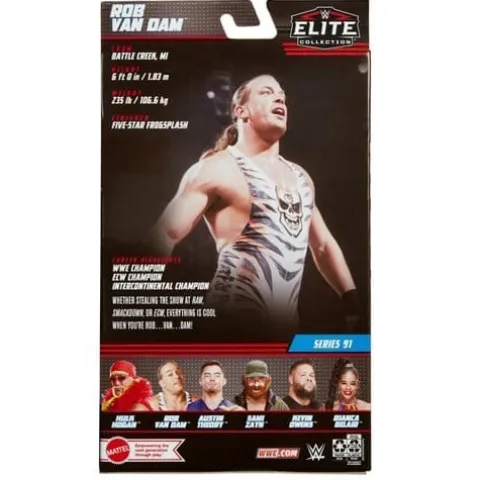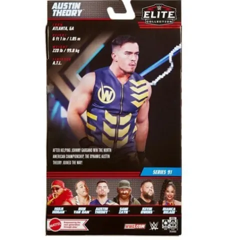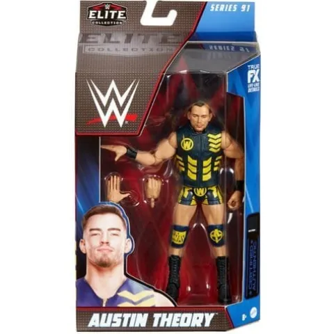 Recreate the in-ring action with the Superstar, Austin Theory! This 6-inch tall scale figure of Theory is ready for kids and collectors to play out iconic matches from NXT or Monday Night Raw! This figure features 25 points of articulation, additional hands, his blue vest, and the face sculpt is detailed with TrueFX technology to perfectly capture Theory’s expression. Make your collection elite with this WWE Elite Collection Series 91 Austin Theory Action Figure! Ages 8 and up.