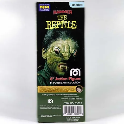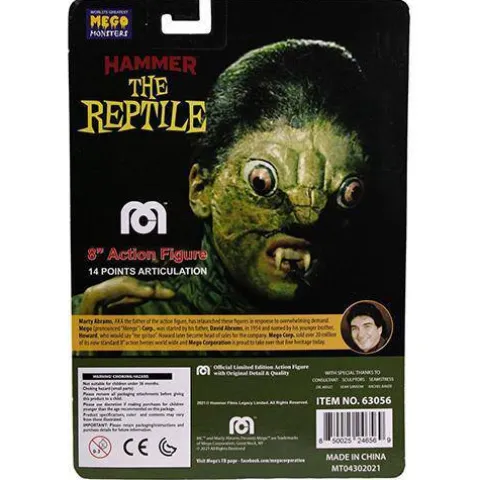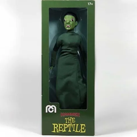 Mego is thrilled to present The World’s Greatest Mego Monsters The Reptile 8” action figure – officially licensed from Hammer Horror! The Reptile slithers her way into the Megoverse for the first time ever in the Classic Mego style!