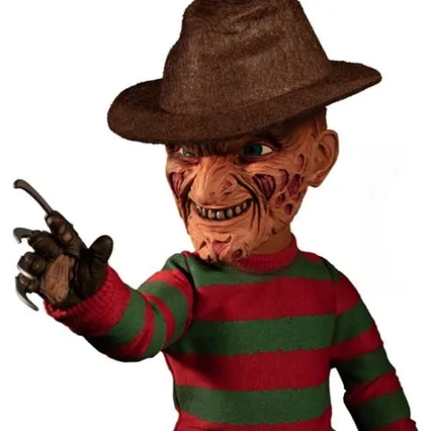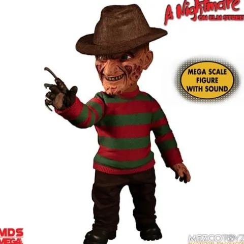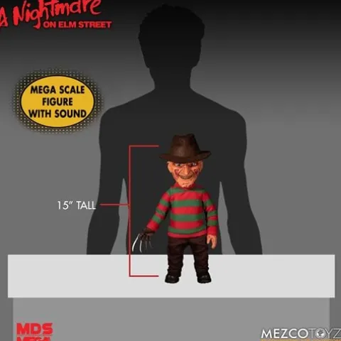 Freddy Krueger, the dream-haunting slasher from theA Nightmare on Elm Streetfilm series, is coming for you! The A Nightmare on Elm Street Freddy Krueger Talking Mega-Scale Doll stands at a frightening 15-inches tall and says 5 nightmare-inducing phrases from the original films including “You think you was going to get away from me?!” The dream demon is dressed in his infamous striped sweater and fedora and features a newly sculpted head portrait, razor glove, and 11 points of articulation. Packaged in a collector-friendly window box, the A Nightmare on Elm Street Freddy Krueger Talking Mega-Scale Doll is a dream come true! Ages 17 and up.