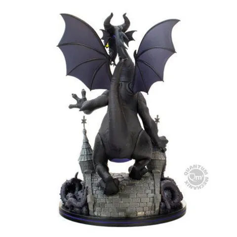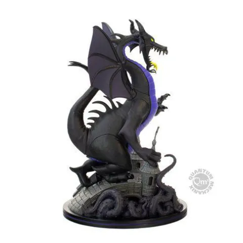 Maleficent is magnificent! One of the most iconic Disney villains in film history is now one of the biggest and most spectacular Q-Figs ever made: The Maleficent Dragon Q-Fig Max Elite! Inspired by the classic Disney animated filmSleeping Beauty, The Maleficent Dragon Q-Fig Max Elite presents Maleficent in her terrifying dragon form as she engages in battle with Prince Phillip. Maleficent’s stunning black and purple scales juxtapose perfectly against her glowing yellow eyes and her forked tongue as she prepares to unleash flaming fury. Maleficent’s Dragon form is massive, standing nearly 8-inches tall atop an ornate cobbled bridge display base. From her intricately sculpted horns to her colossal wingspan, Disney Villians Maleficent Dragon Q-Fig Max Elite is simply the ultimate collectible for any Disney fan.